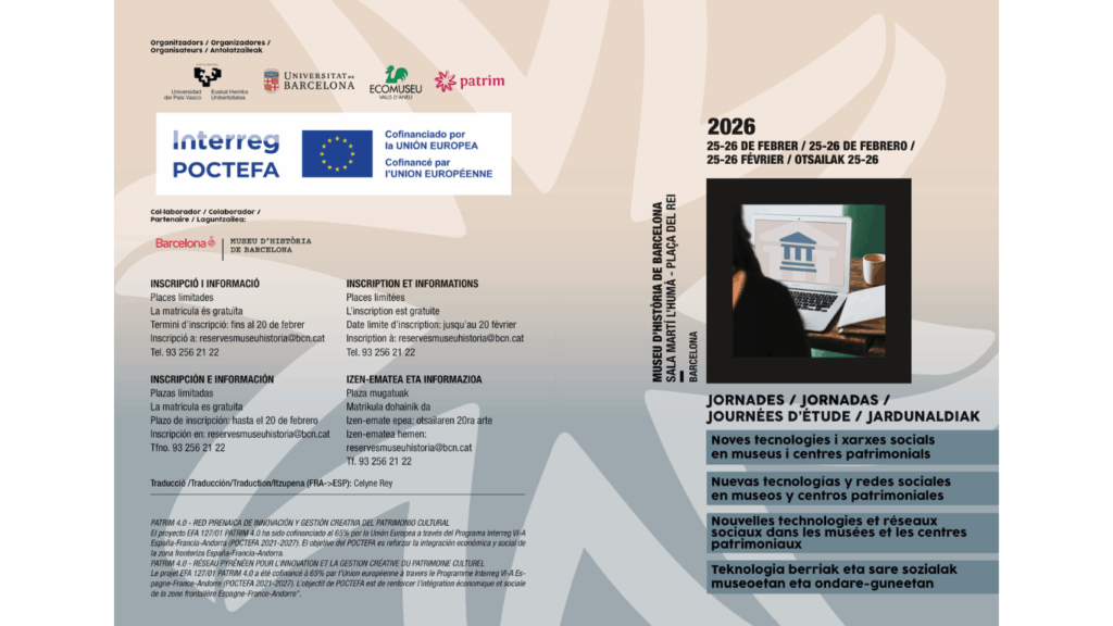 Jornadas PATRIM 2030 / CONFÉRENCES PATRIM 2030, Sin categorizarPATRIM 4.0: Jornadas sobre nuevas tecnologías y redes sociales en museos y centros patrimoniales en Barcelona