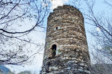 Está situado en lo alto de una colina sobre la llanura de Esterri d’Àneu, dominando las dos vías de paso naturales de los ríos Noguera…