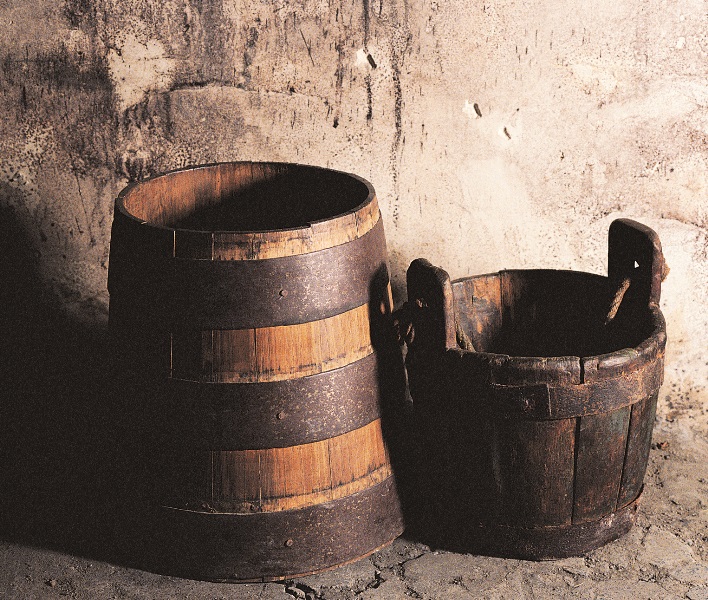 A la izquierda herrada y al lado el balde