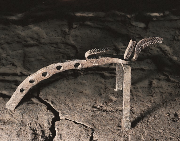 Gallo de hierro con orificios destinados a sujetar el espetón de asar.